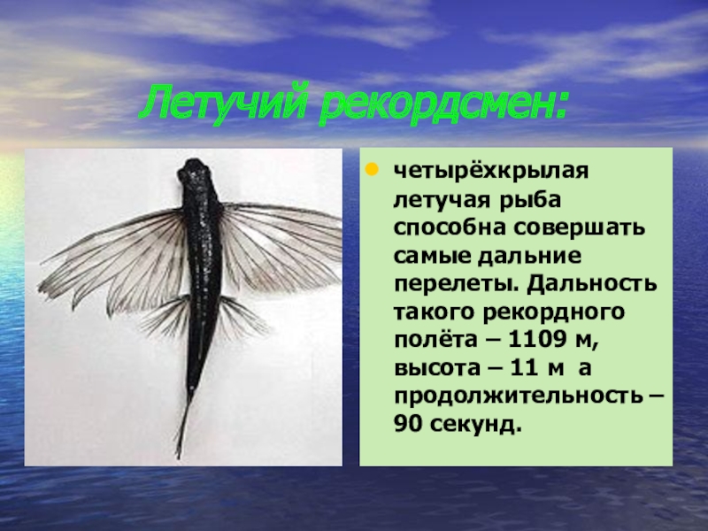 четырёхкрылая летучая рыба способна совершать самые дальние перелеты. Дальность