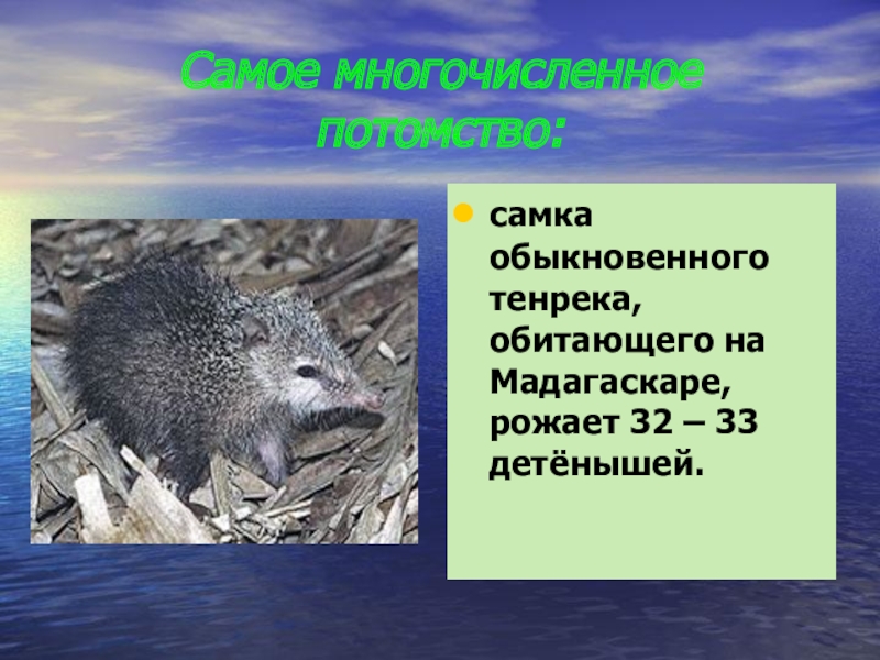 самка обыкновенного тенрека, обитающего на Мадагаскаре, рожает 32