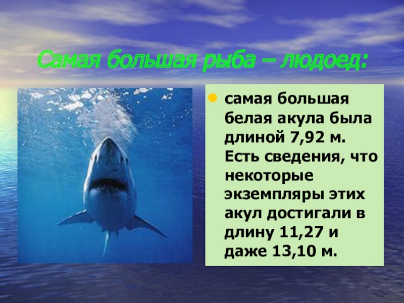 7,92 м. Есть сведения, что некоторые экземпляры этих акул достигали в длину 11,27 и даже 13,10 м.