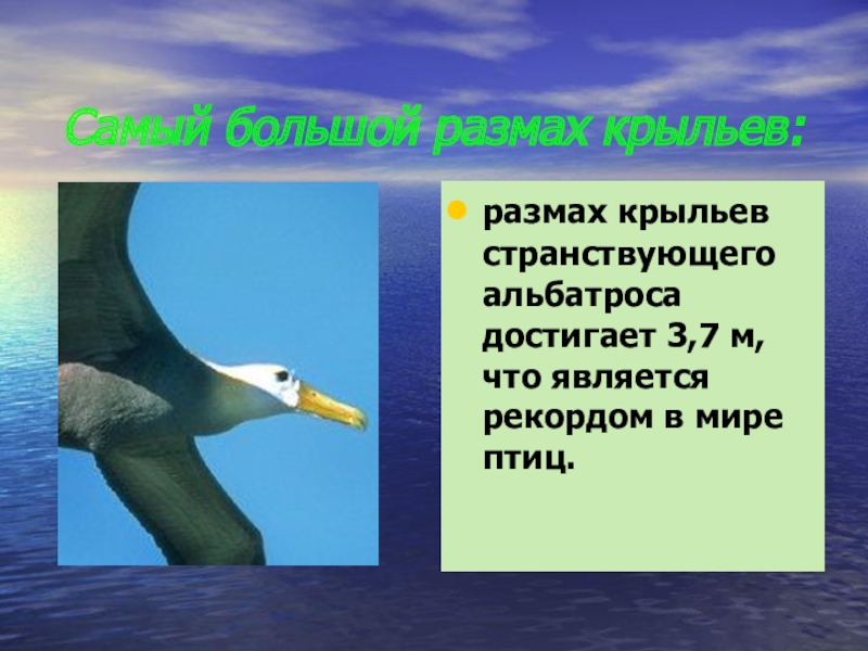 размах крыльев странствующего альбатроса достигает 3,7 м,