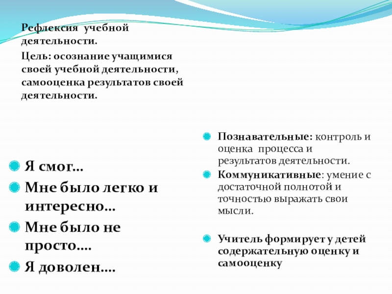Учитель формирует у детей содержательную оценку и самооценку