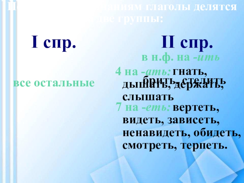 вертеть, видеть, зависеть, ненавидеть, обидеть, смотреть, терпеть.