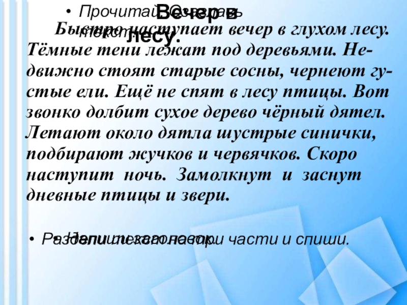 Раздели текст на три части и спиши.