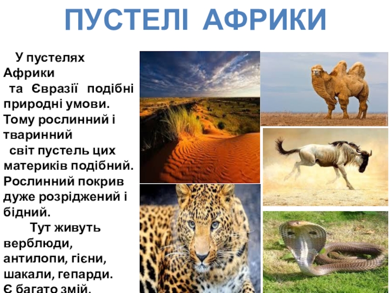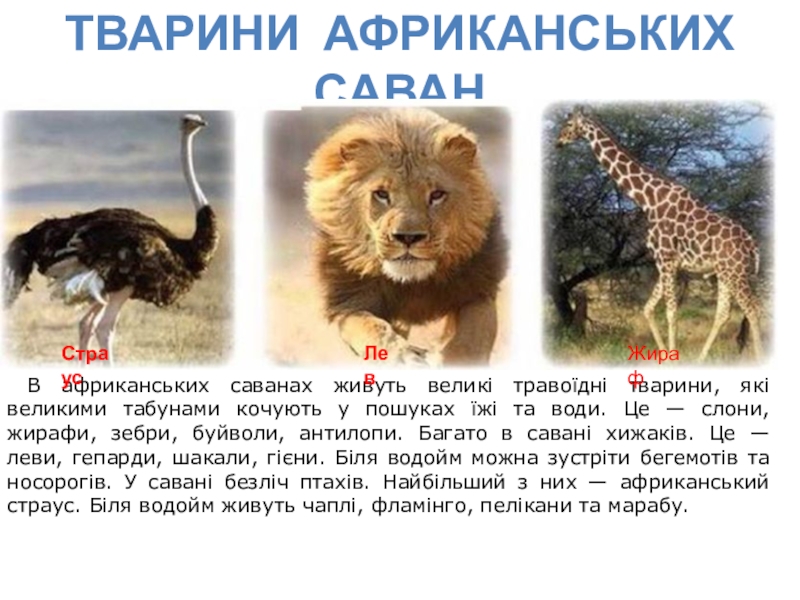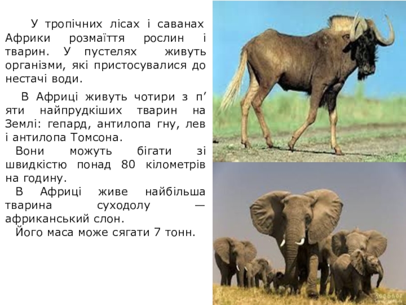 В Африці живуть чотири з п’яти найпрудкіших тварин на Землі: гепард, антилопа гну, лев і антилопа Томсона.