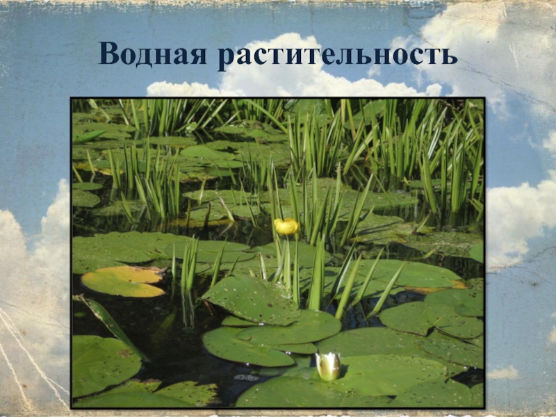 Растения: аир обыкновенный или болотный, камыш озерный, рогоз узколистный, ряска малая, кубышка желтая, кувшинка чисто-белая и др.