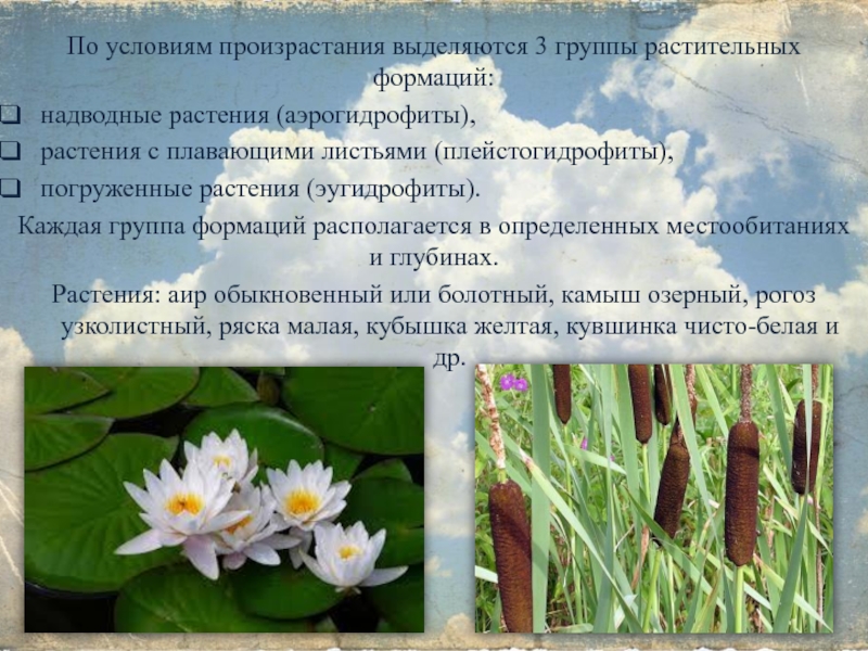 Слайд 31По условиям произрастания выделяются 3 группы растительных формаций: