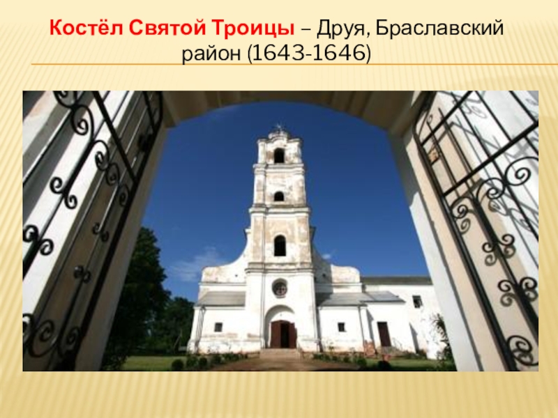 Слайд 27Костёл Святой Троицы – Друя, Браславский район (1643-1646)