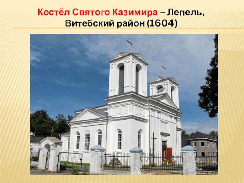 Слайд 25Костёл Святого Казимира – Лепель, Витебский район (1604)