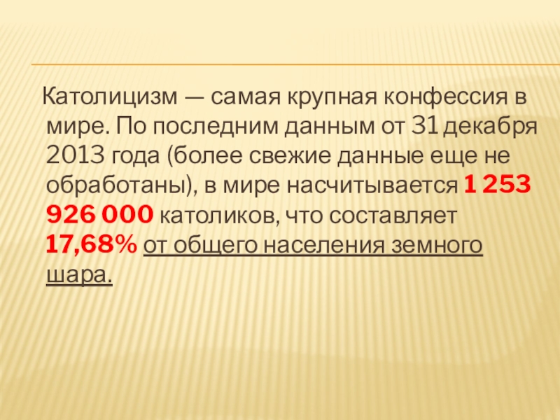 Слайд 5 Католицизм — самая крупная конфессия в мире. По последним