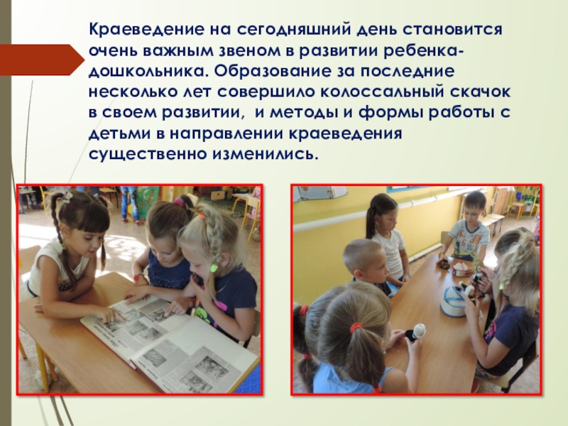 Слайд 7Краеведение на сегодняшний день становится очень важным звеном в развитии ребенка-дошкольника.