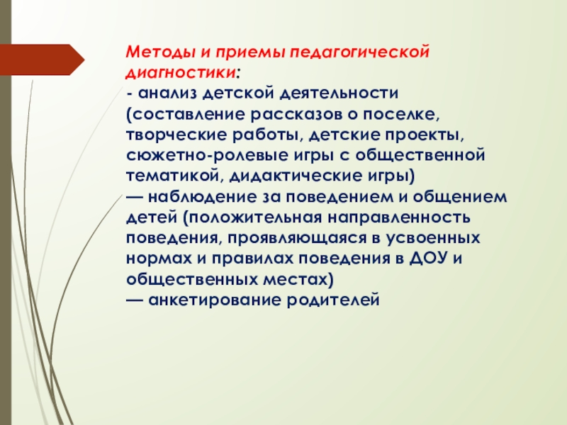 Слайд 27Методы и приемы педагогической диагностики:
