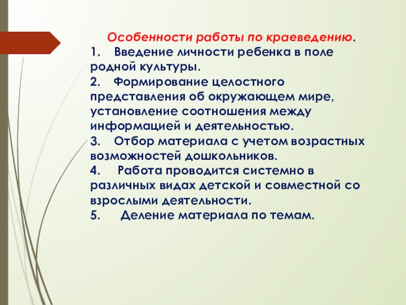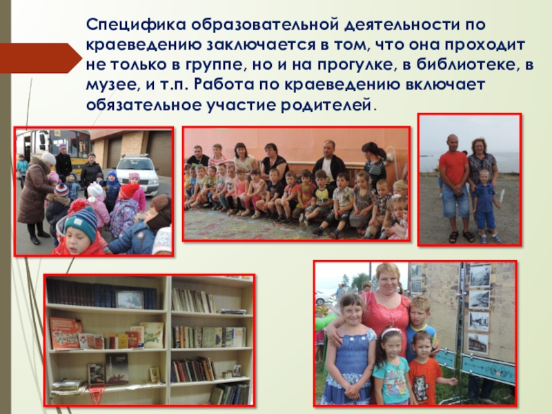 Слайд 22Специфика образовательной деятельности по краеведению заключается в том, что она проходит