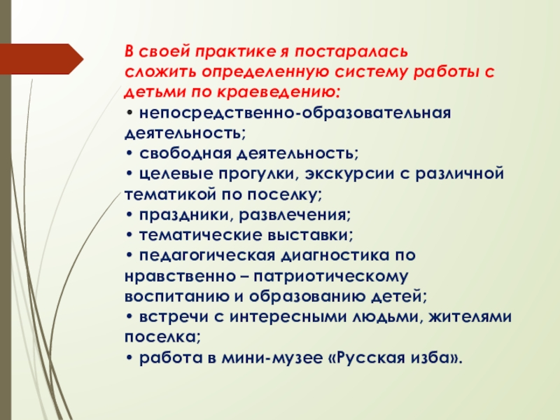 Слайд 4В своей практике я постаралась сложить определенную систему работы с детьми по