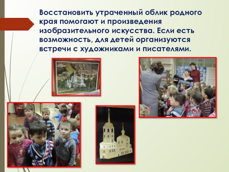 Слайд 18Восстановить утраченный облик родного края помогают и произведения изобразительного искусства. Если