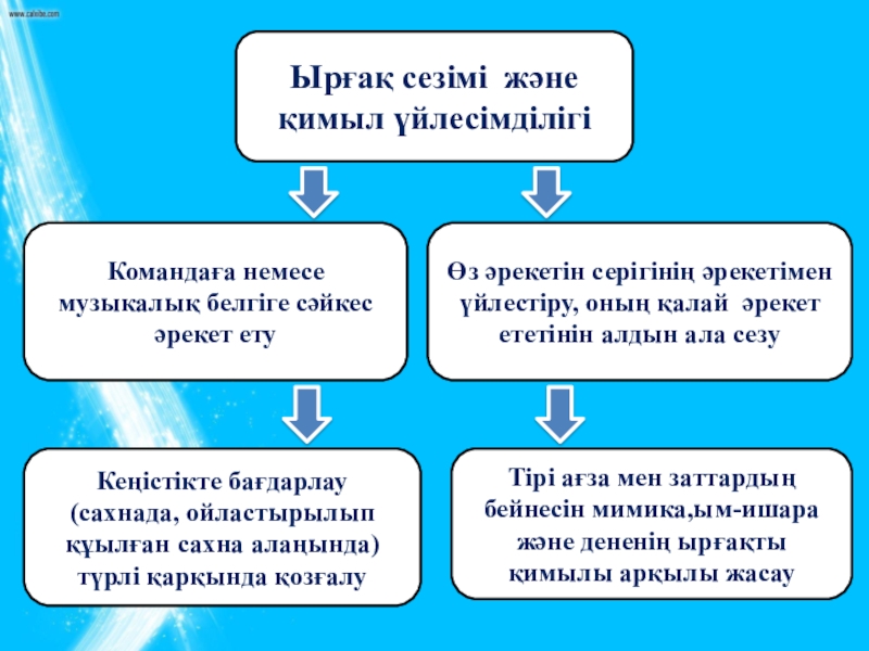 Кеңістікте бағдарлау (сахнада, ойластырылып құылған сахна алаңында) түрлі қарқында қозғалу