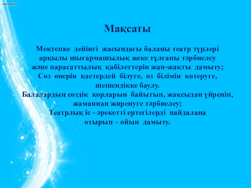 Мимика, ым-ишара, дауыс ырғағы, ойын атрибуттарын қолданып, таныс әдеби шығармалар негізінде кейіпкерлердің бейнелерін жасау