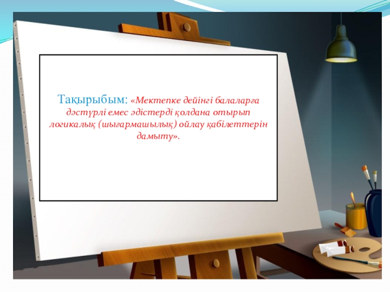 Слайд 3Тақырыбым: «Мектепке дейінгі балаларға дәстүрлі емес әдістерді қолдана отырып логикалық (шығармашылық)