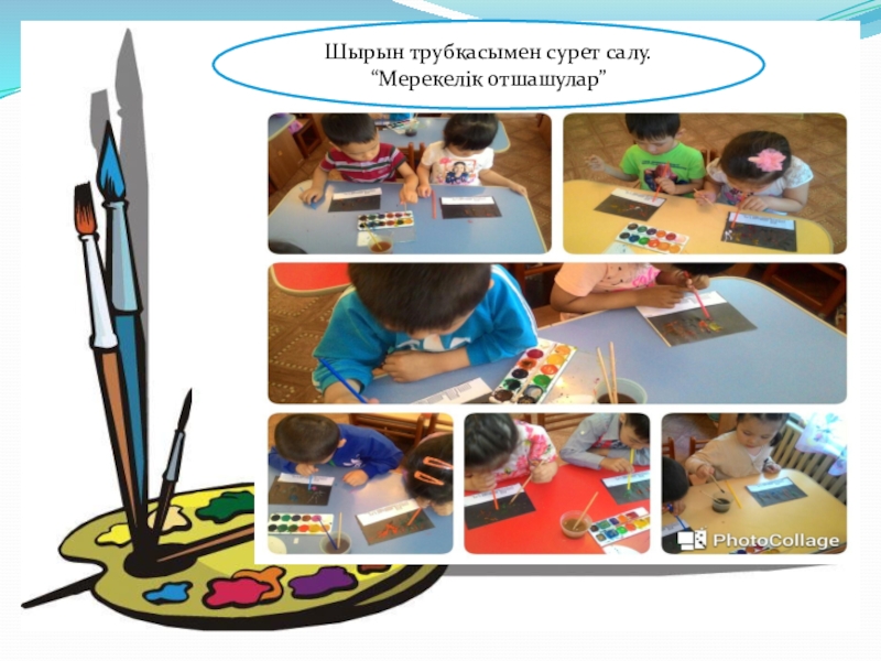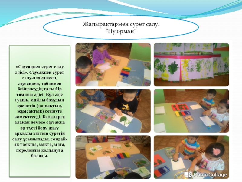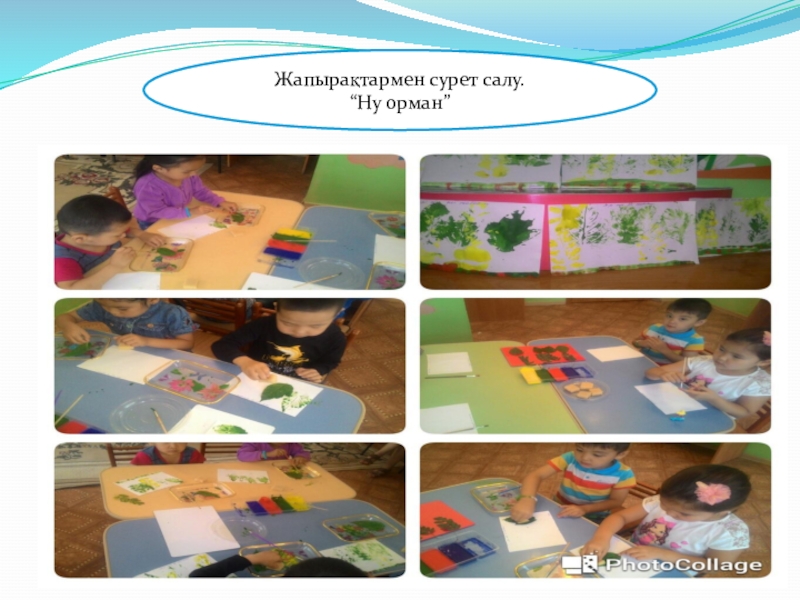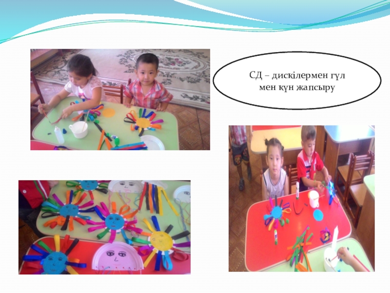Төмендегі слайдтарға назар аударыңыздар! Мында балалар ұйымдастырылған оқу іс- әрекеті кезінде сурет салу, жапсыру, мүсіндеу өнерлерін жасауда.