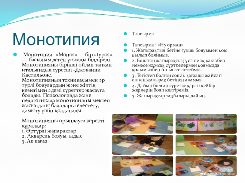 Монотипия- «Monos» — бір «typos» — басылым деген ұғымды білдіреді. Монотипияны