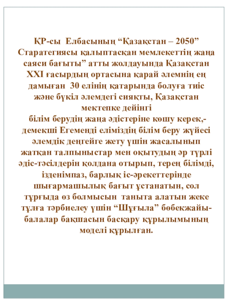 Егеменді еліміздің білім беру жүйесін әлемдік деңгейге