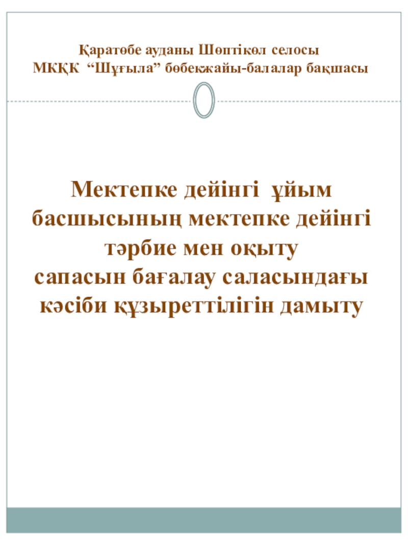 Аудандық «Мектепке дейінгі тәрбие және оқытуды озық ұйымдастыру» номинациясы