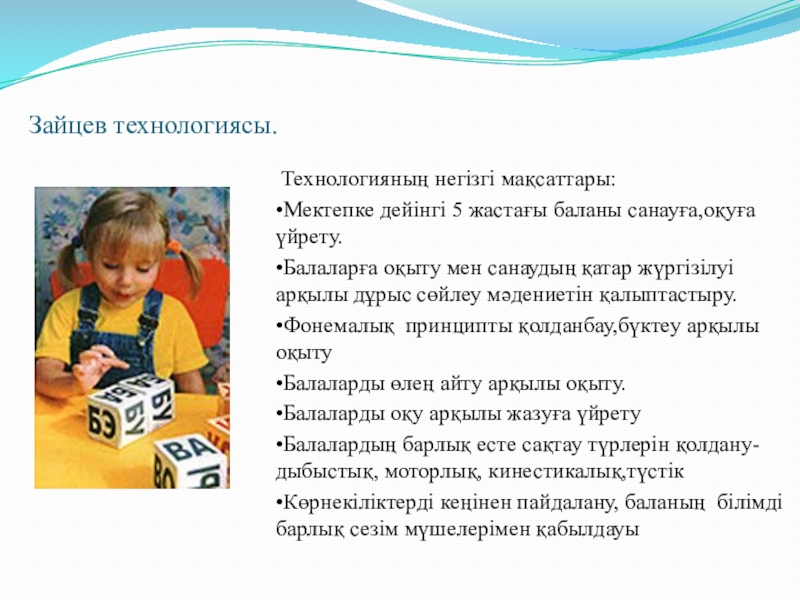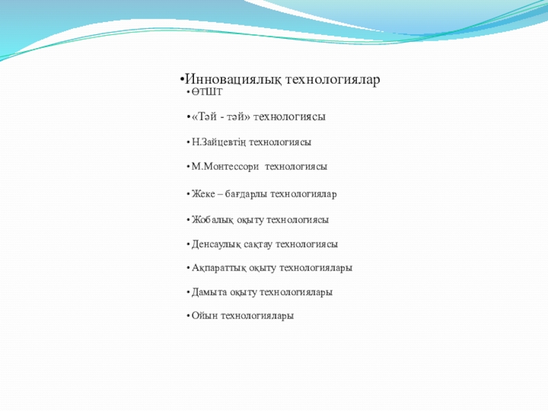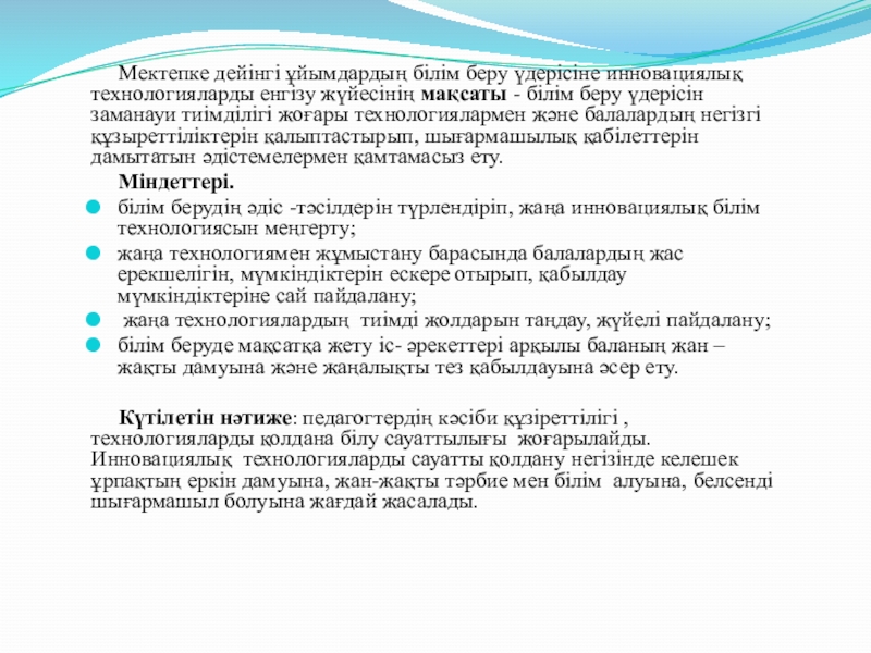 Слайд 4Мектепке дейінгі білім беру үдерісіне инновациялық технологияларды енгізу