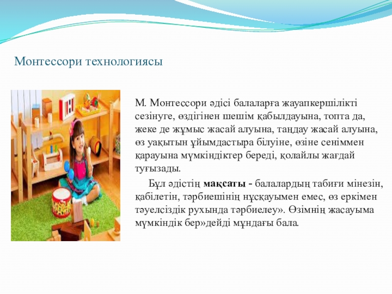 М. Монтессори әдісі балаларға жауапкершілікті сезінуге, өздігінен шешім