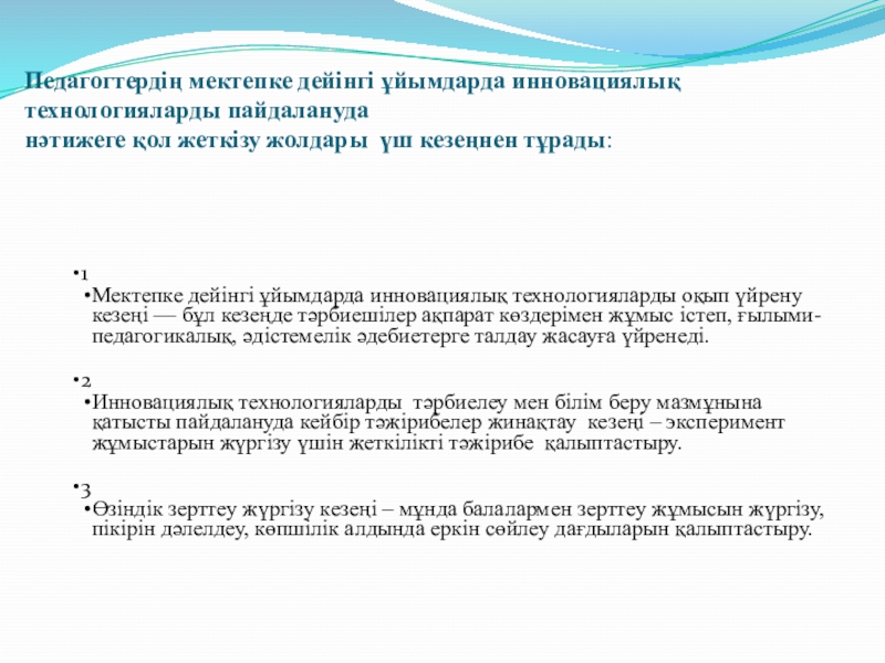 Слайд 3 Мектепке дейінгі ұйымдардың білім беру үдерісіне инновациялық технологияларды
