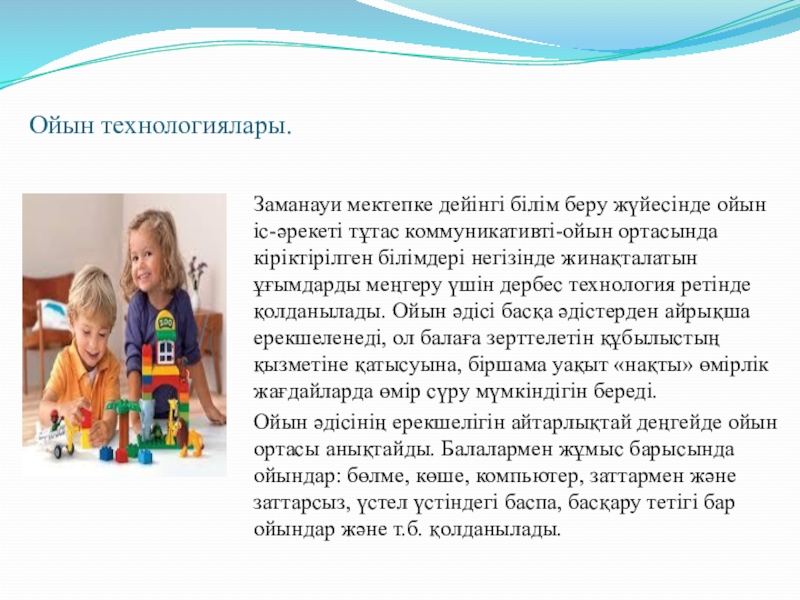 Бұл технологиялар білім беру жүйесінің ортасына бала