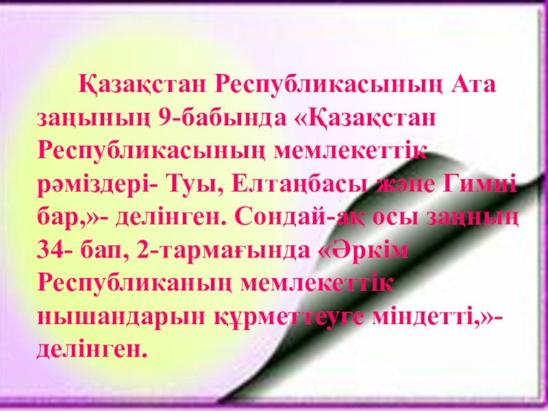 Қазақстан Республикасының Ата заңының 9-бабында «Қазақстан Республикасының мемлекеттік рәміздері- Туы,