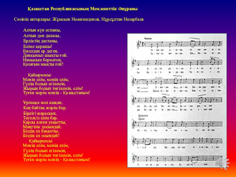 Слайд 37Қазақстан Республикасы Мемлекеттік Гимнінің авторлары