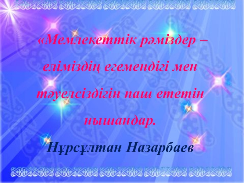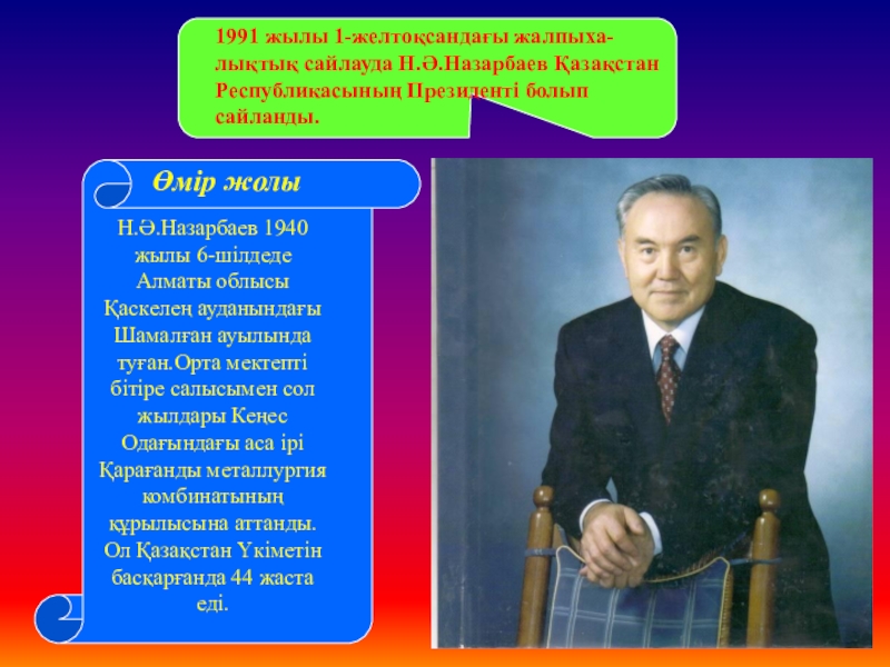 Слайд 39ҚАЗАҚСТАН РЕСПУБЛИКАСЫНЫҢ ПРЕЗИДЕНТІ НҰРСҰЛТАН НАЗАРБАЕВ