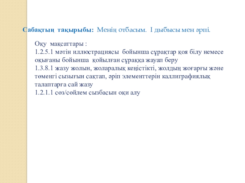 Сабақтың тақырыбы: Менің отбасым. І дыбысы мен әрпі.
