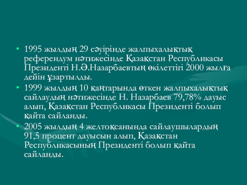 Қазақстан Республикасы Ұлттық кеңесінің төрағасы;