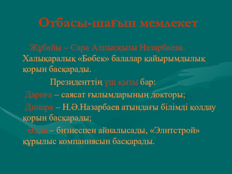 Назарбаев Университеті Жоғары қамқорлық кеңесінің төрағасы.