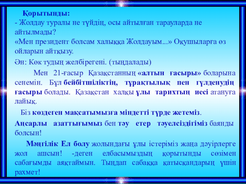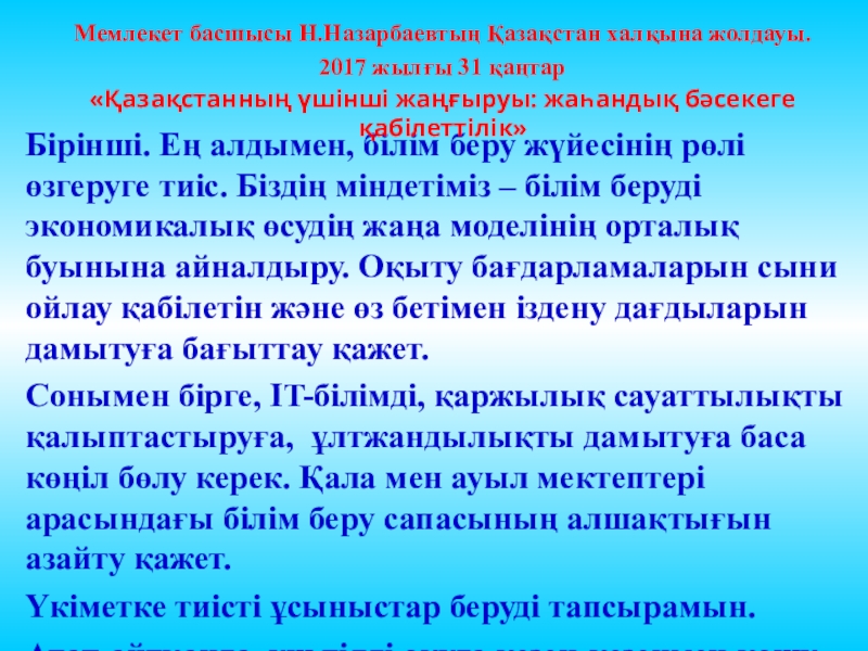 Мемлекет басшысы Н.Назарбаевтың Қазақстан халқына жолдауы.