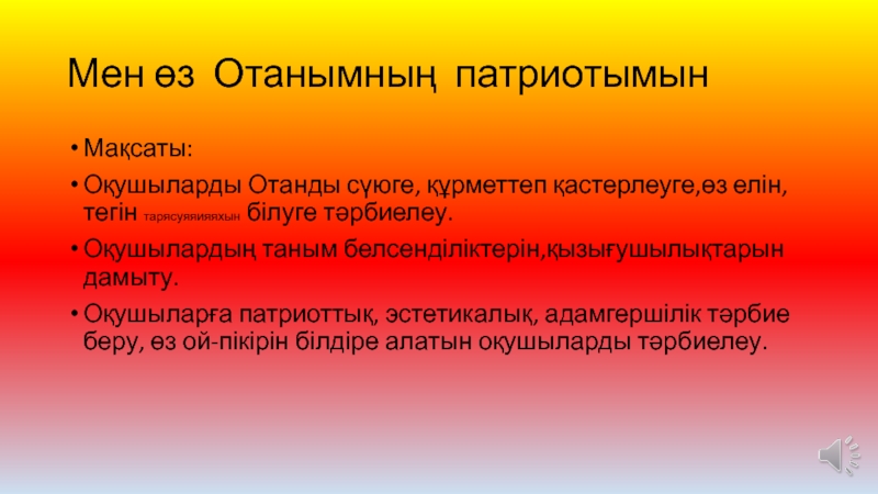 Оқушыларды Отанды сүюге, құрметтеп қастерлеуге,өз елін, тегін тарясуяяияяхын
