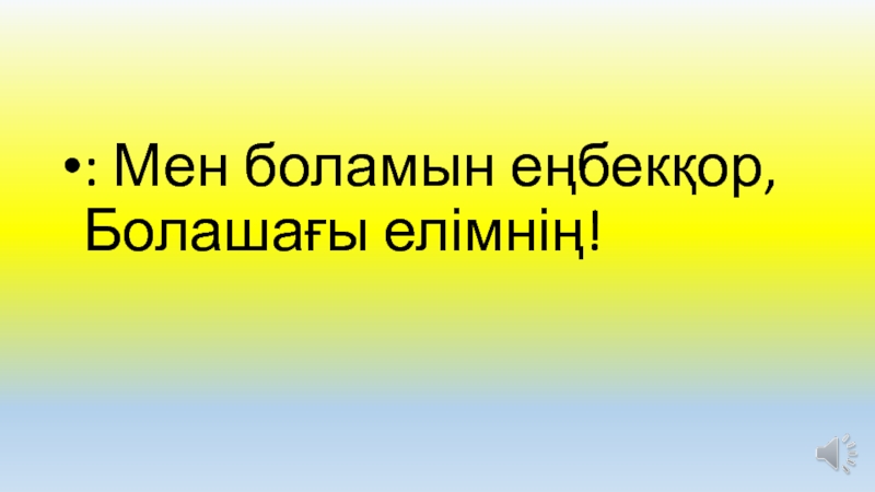 Слайд 29: Мен боламын еңбекқор, Болашағы елімнің!
