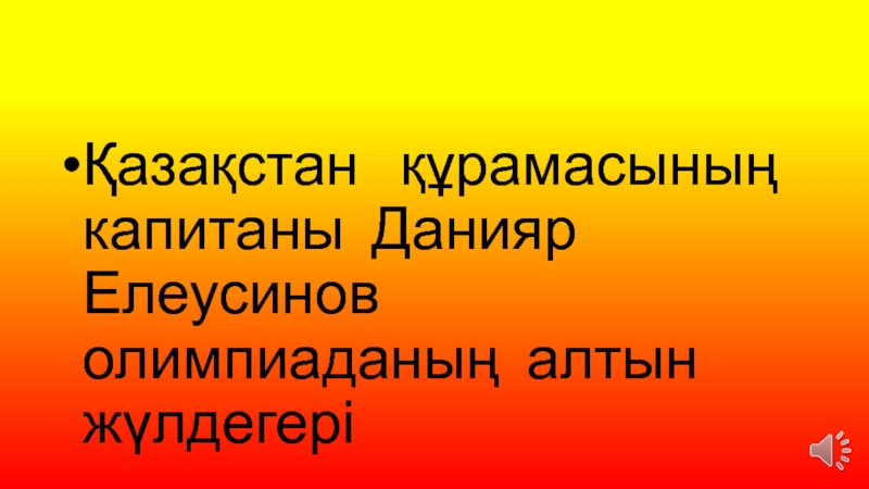 Слайд 20Қазақстан құрамасының капитаны Данияр Елеусинов олимпиаданың алтын жүлдегері
