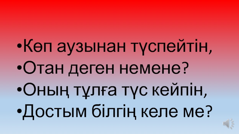 Слайд 4Көп аузынан түспейтін,