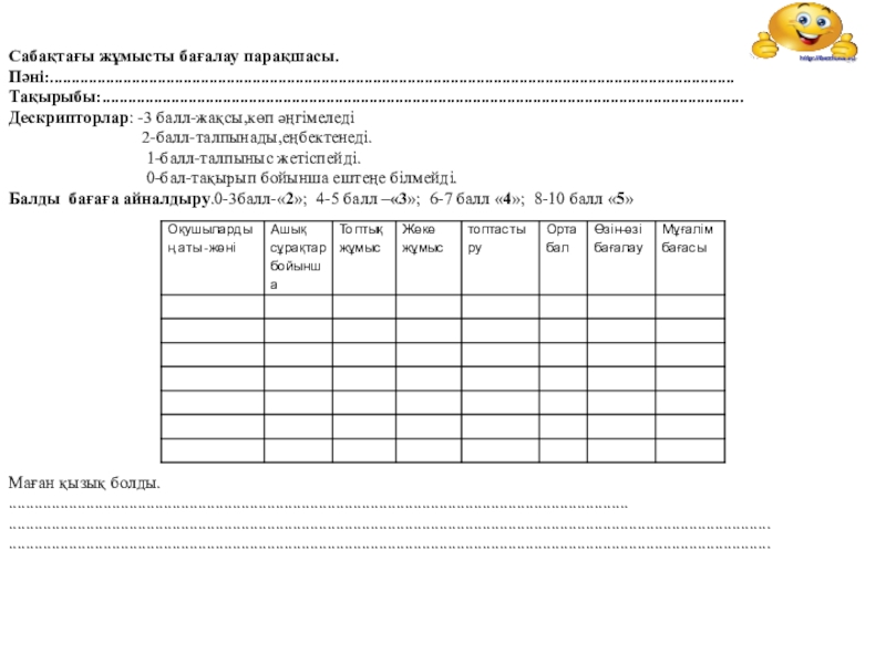 Бағалау критерийі: Білім алушы