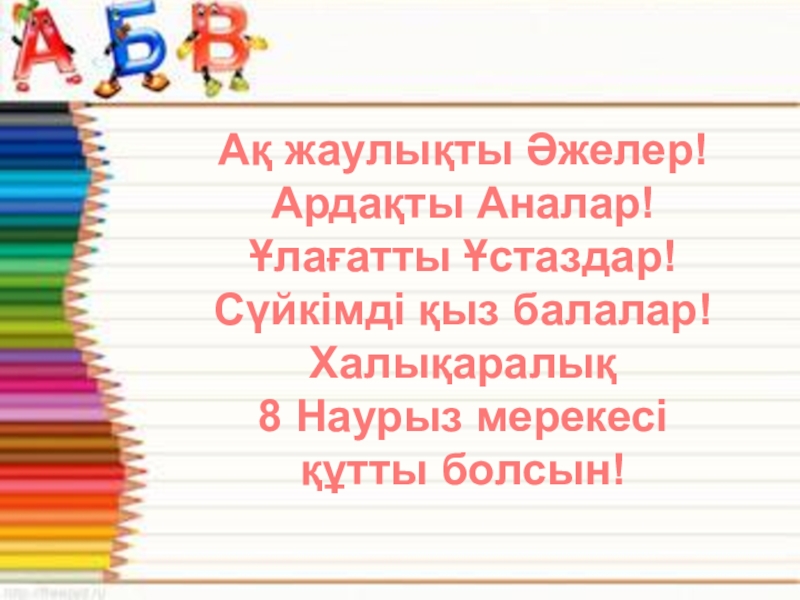 Ақ жаулықты Әжелер!Ардақты Аналар!Ұлағатты Ұстаздар!Сүйкімді қыз балалар!Халықаралық 8 Наурыз мерекесіқұтты болсын!