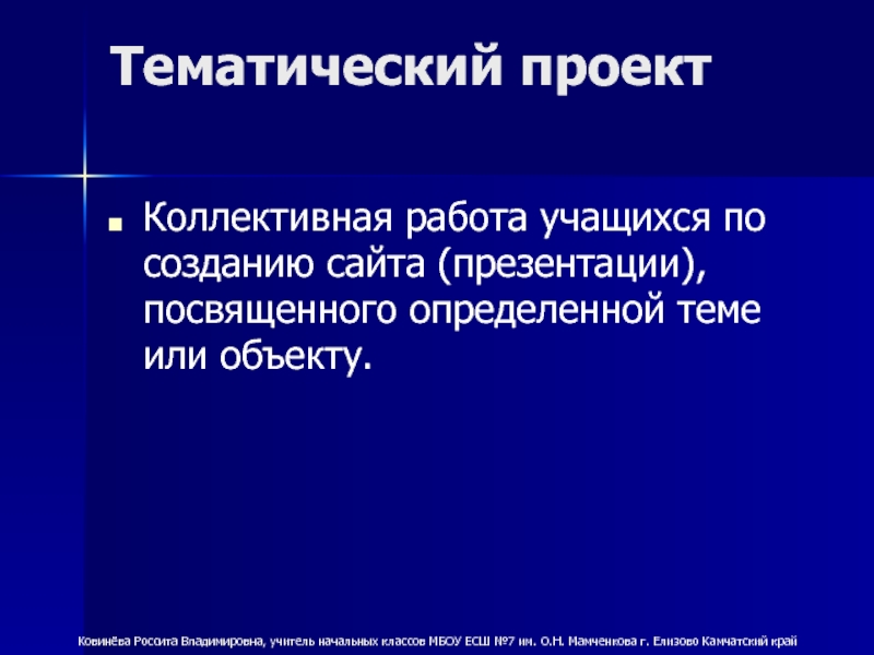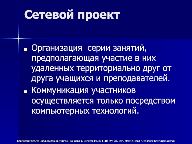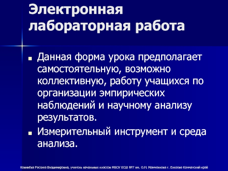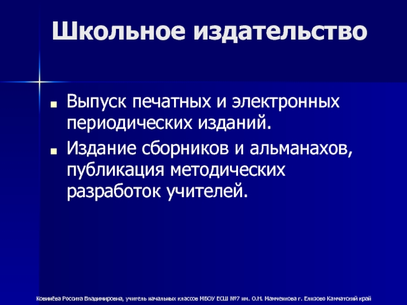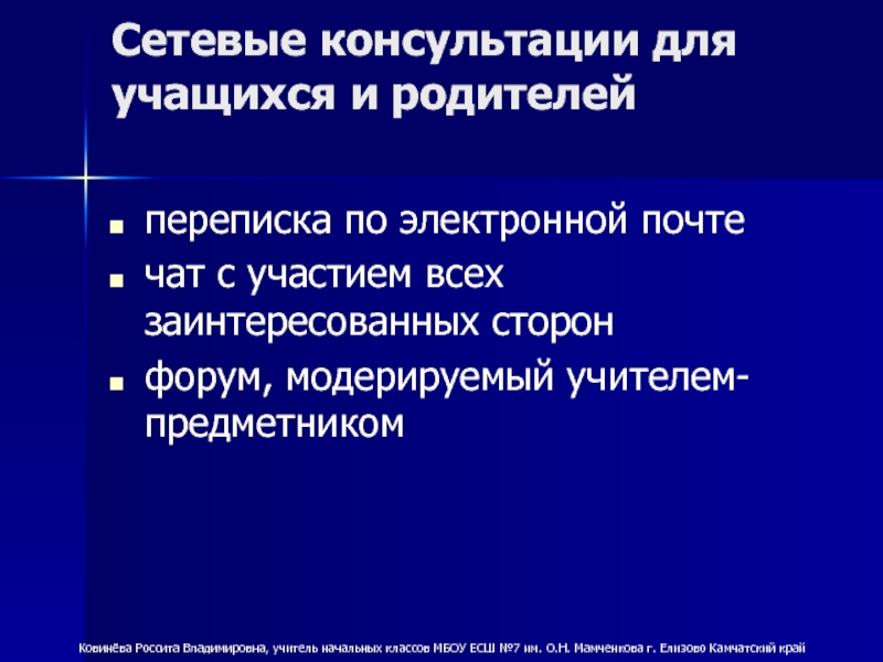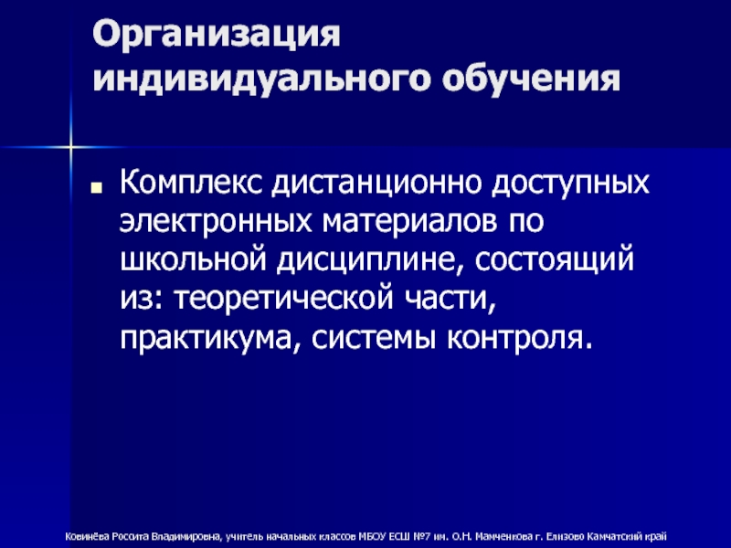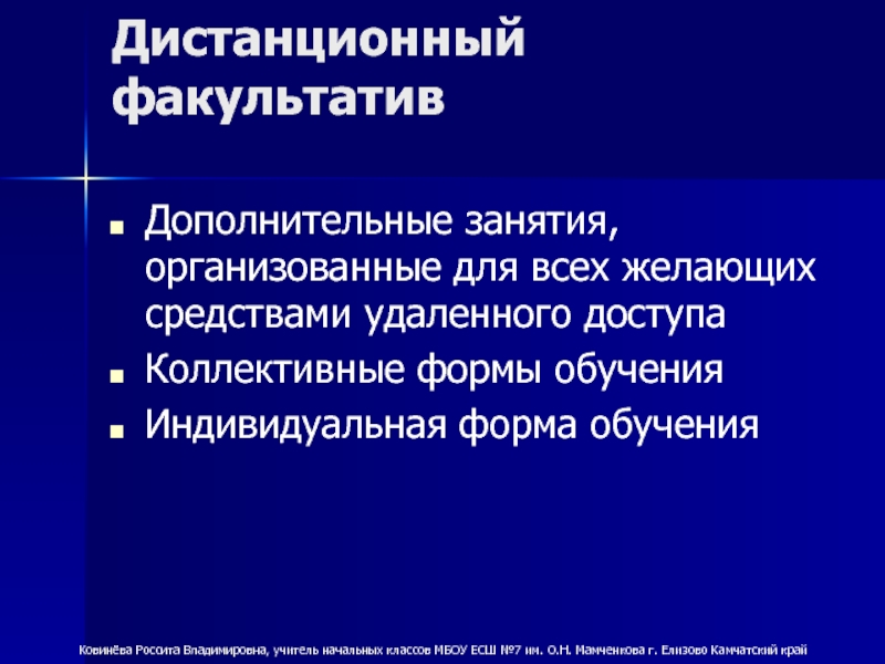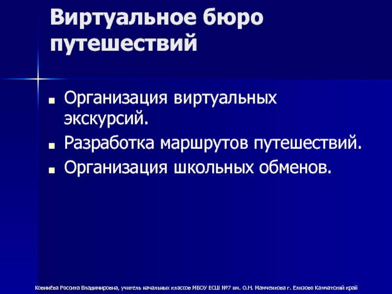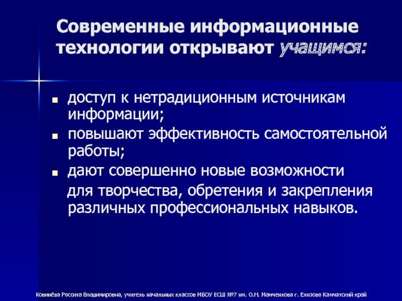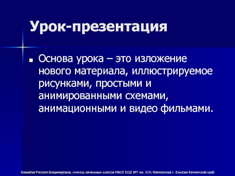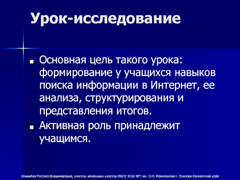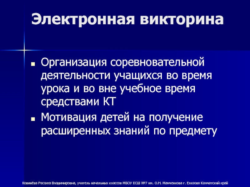 Ковинёва Россита Владимировна, учитель начальных классов МБОУ ЕСШ №7 им. О.Н. Мамченкова г. Елизово Камчатский край