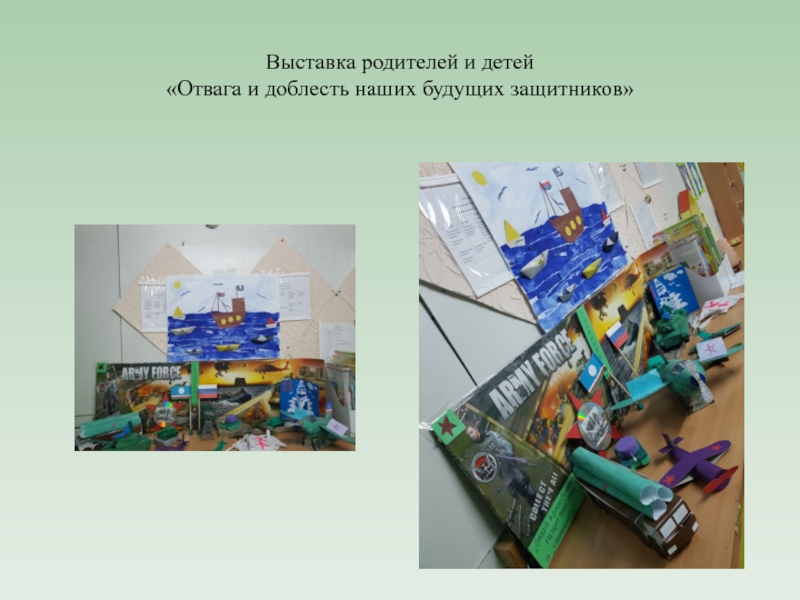 «Что такое Армия».Прошла выставка поделок родителей и детей на военную тематику.