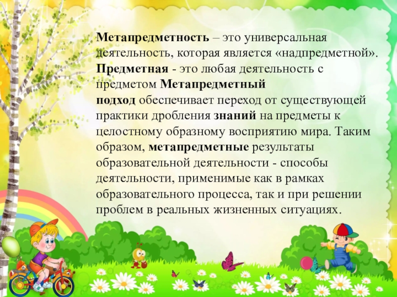 Слайд 2Метапредметность – это универсальная деятельность, которая является «надпредметной».