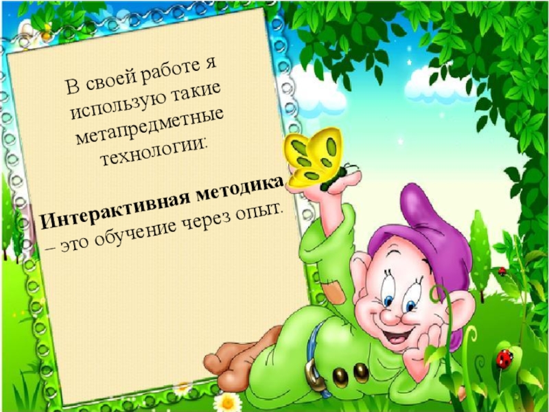 В своей работе я использую такие метапредметные технологии:Интерактивная методика – это обучение через опыт.