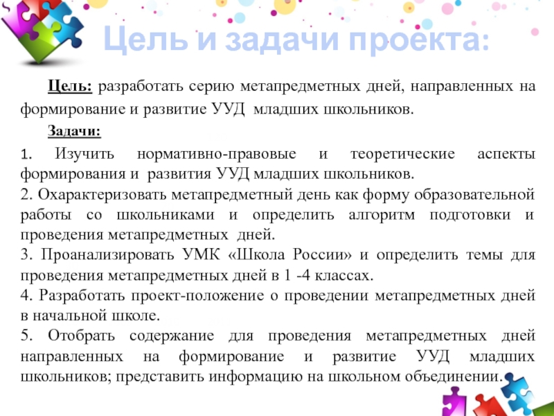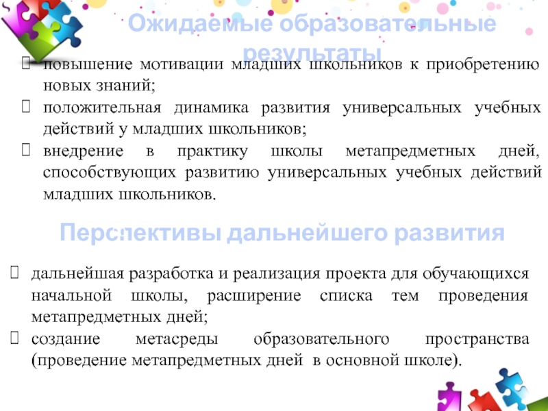 внедрение в практику школы метапредметных дней, способствующих развитию универсальных учебных действий младших школьников.