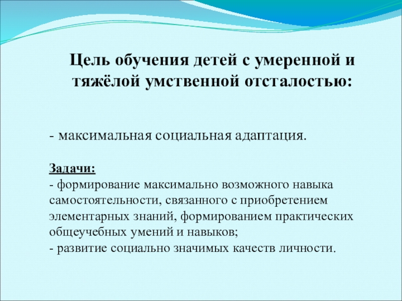Цель обучения детей с умеренной и тяжёлой умственной отсталостью: