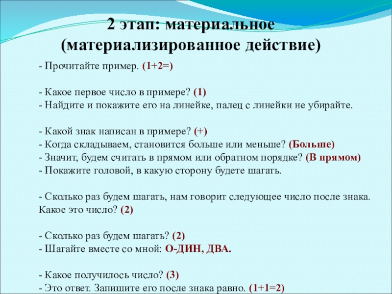 2 этап: материальное (материализированное действие)