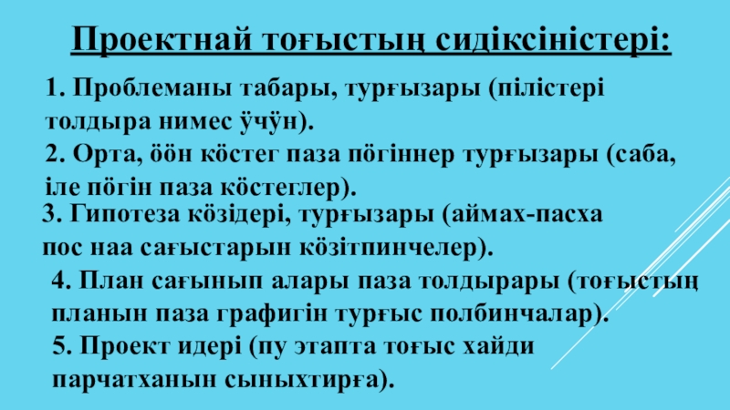 3. Гипотеза кӧзідері, турғызары (аймах-пасха пос наа сағыстарын кӧзітпинчелер).